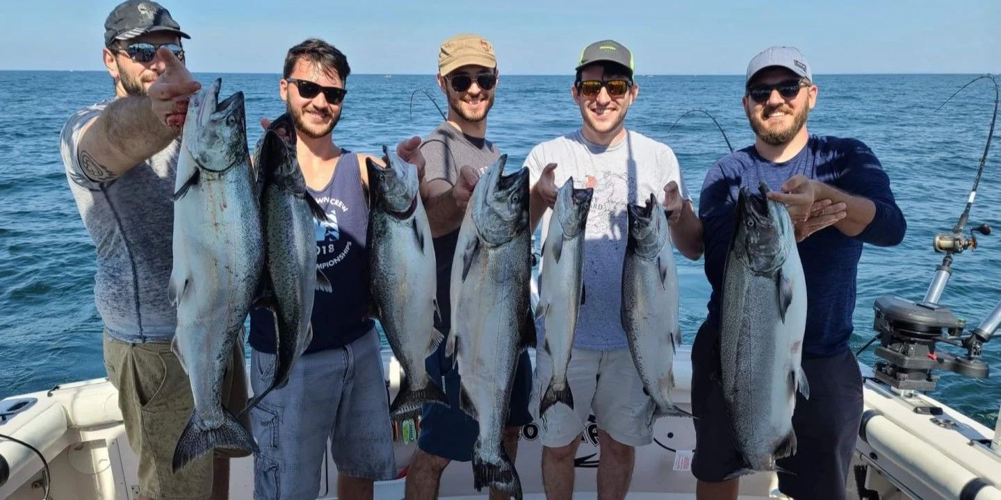 Ready to test your mettle against Lake Ontario's top game fish? Captain Scott Miller's full-day advanced charter is calling your name. This isn't your average tourist trip – it's 8 hours of pure fishing action designed for seasoned anglers looking to up their game. We're talking serious pursuit of trophy Chinook Salmon, Brown Trout, Lake Trout, and those acrobatic Steelhead that'll make your drag sing. Bring your A-game and leave the gear worries to us – we've got top-notch rods, reels, and all the tackle you'll need to tangle with Ontario's finned giants.